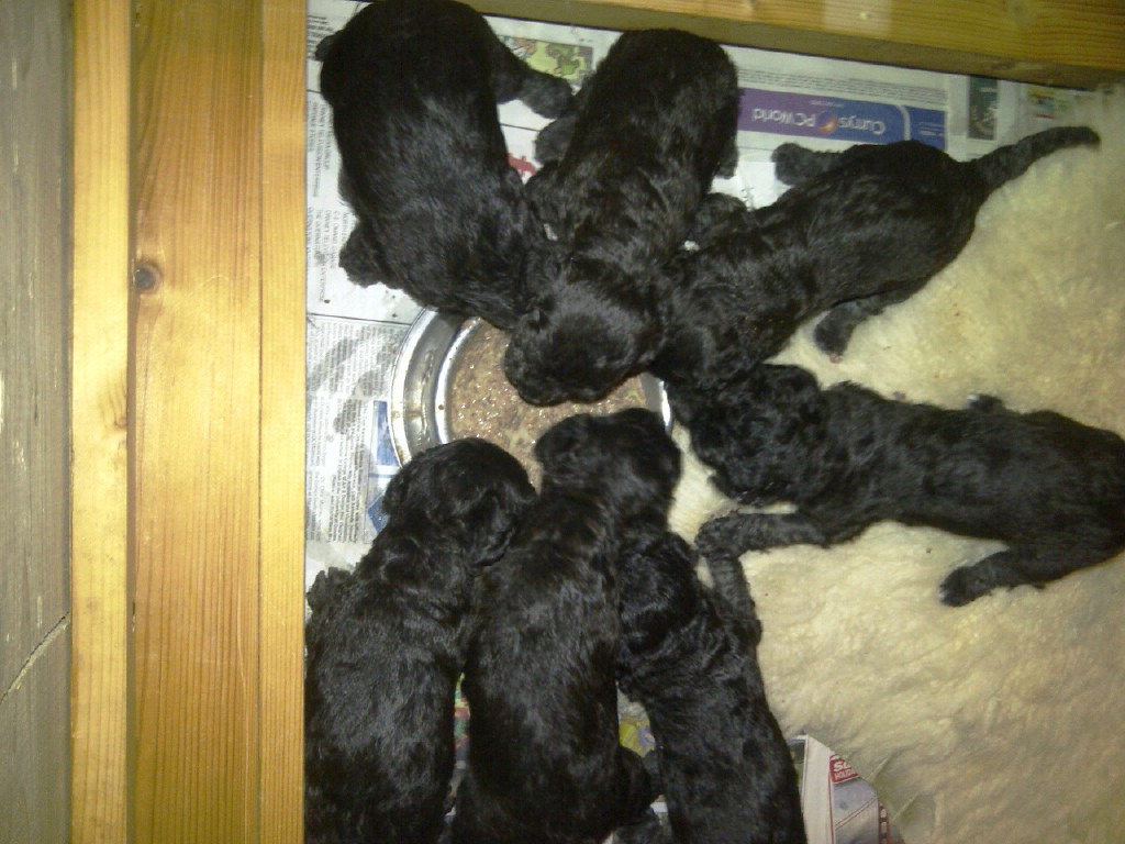 The seven pups have started another milestone and begun weening onto more solid food. It consisted of a mix of eating and walking in it – but they seemed to enjoy it!