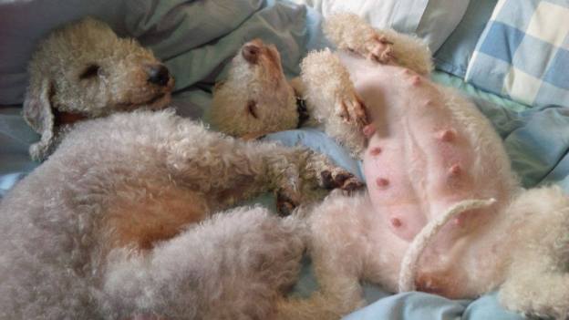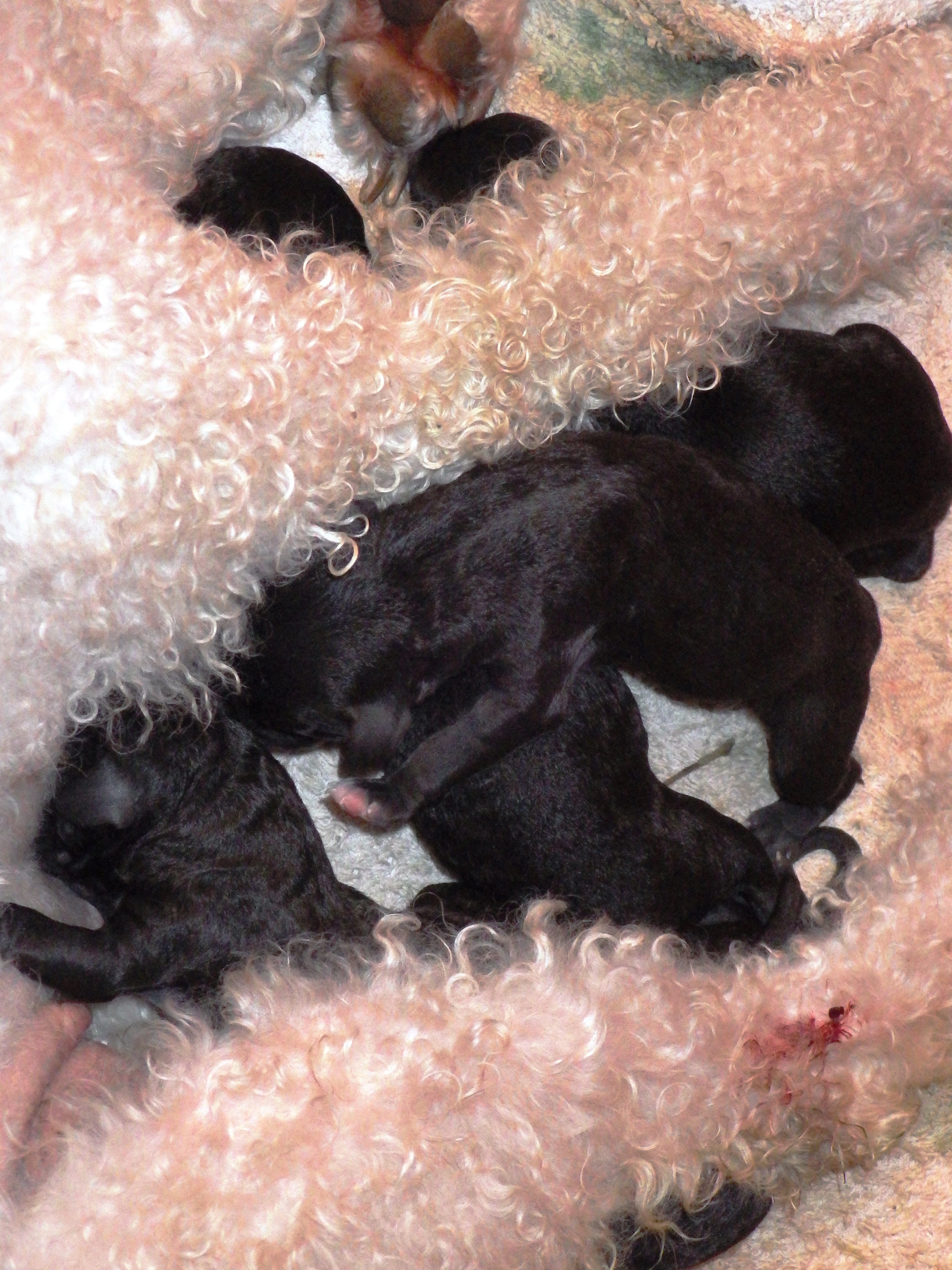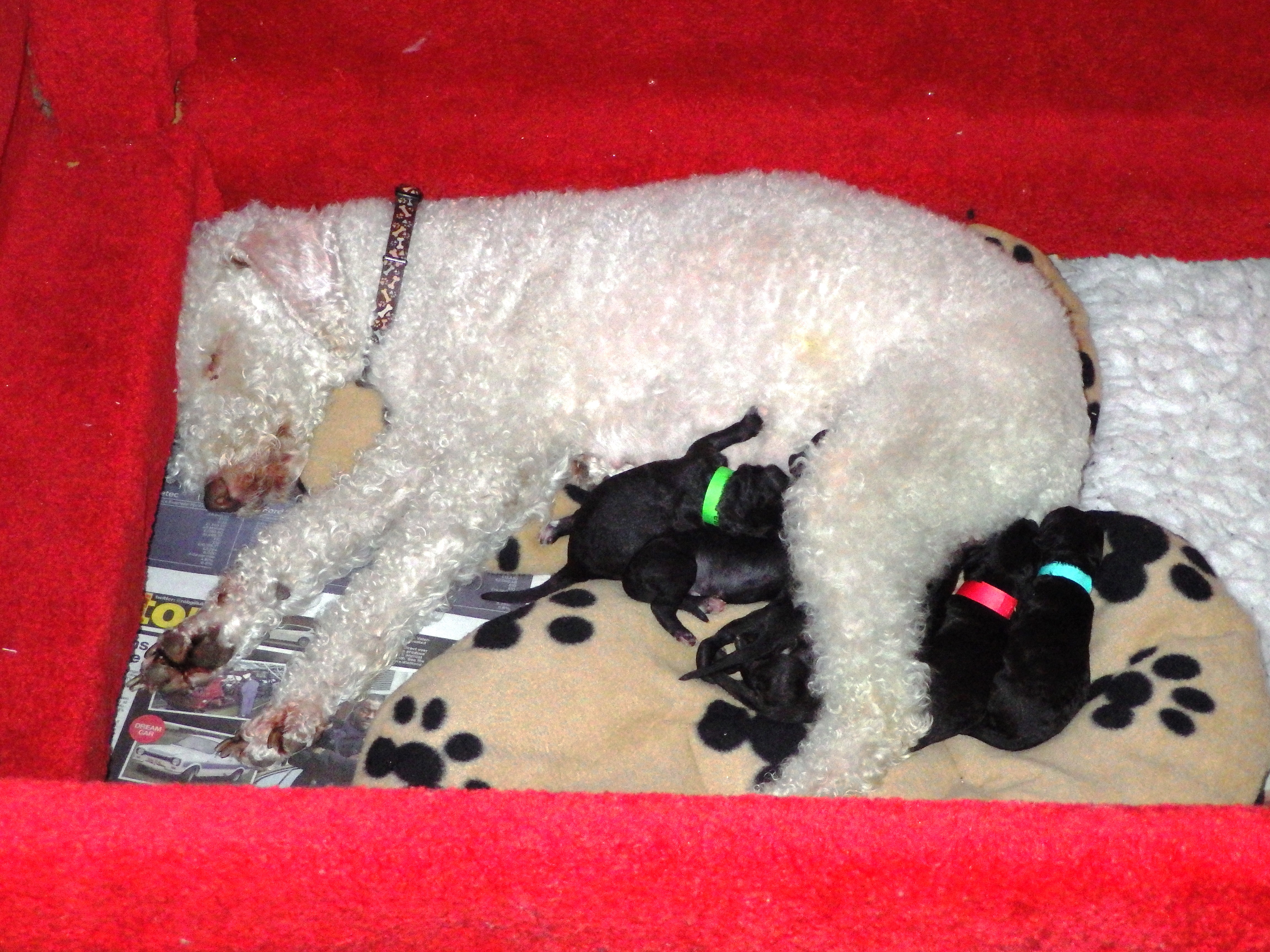 Two were born significantly lower weights and we just hope they pull through and suckle properly. All look to be ‘Blue’ Bedlingtons – if you don’t know what this means, it’s just the colour of their coat will be a light grey/almost blue colour.